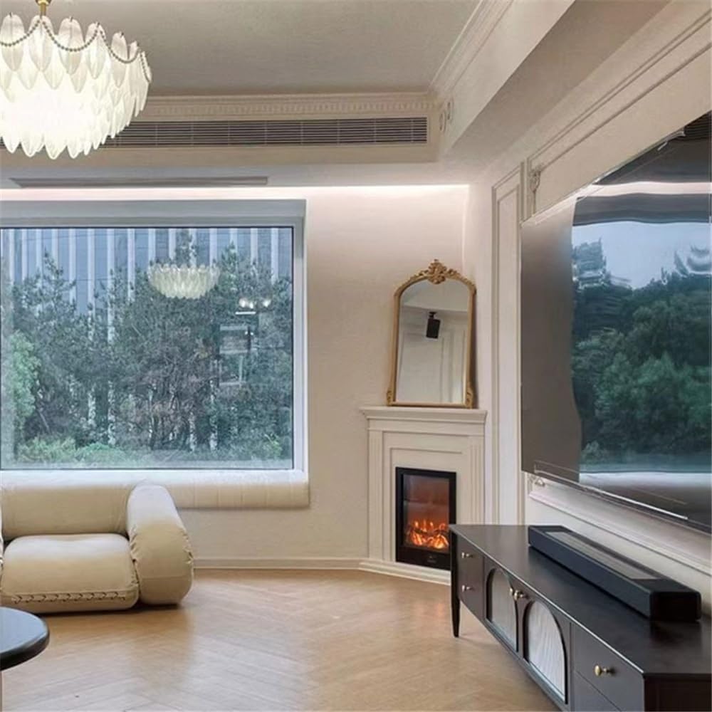 - Lámina decorativa: Esta chimenea eléctrica blanca le permite añadir un toque de lujo francés a cualquier habitación. Ya sea que la coloque en la sala, el dormitorio o incluso el comedor, su efecto de llama realista y su elegante diseño la convierten en una pieza central impresionante que complementa diversos estilos de decoración.